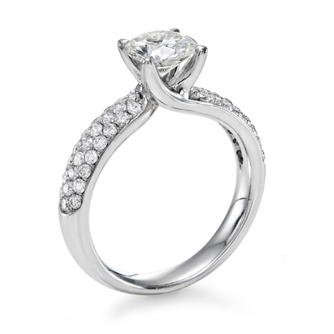 שלוש שורות של יהלומי צד במשקל 0.60 קראט, מוסיפות זוהר לטבעת שמתנקזת לכדי יהלום מרכזי, גדול ומרשים הניתן לשיבוץ במשקל 0.80-1.30 קראט.