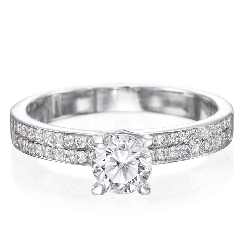 היא מתאימה לשיבוץ יהלום מרכזי של 0.30-0.70 קראט ומקבלת נפח זוהר בזכות שתי שורות סימטריות של יהלומי צד במשקל 0.25 קראט.