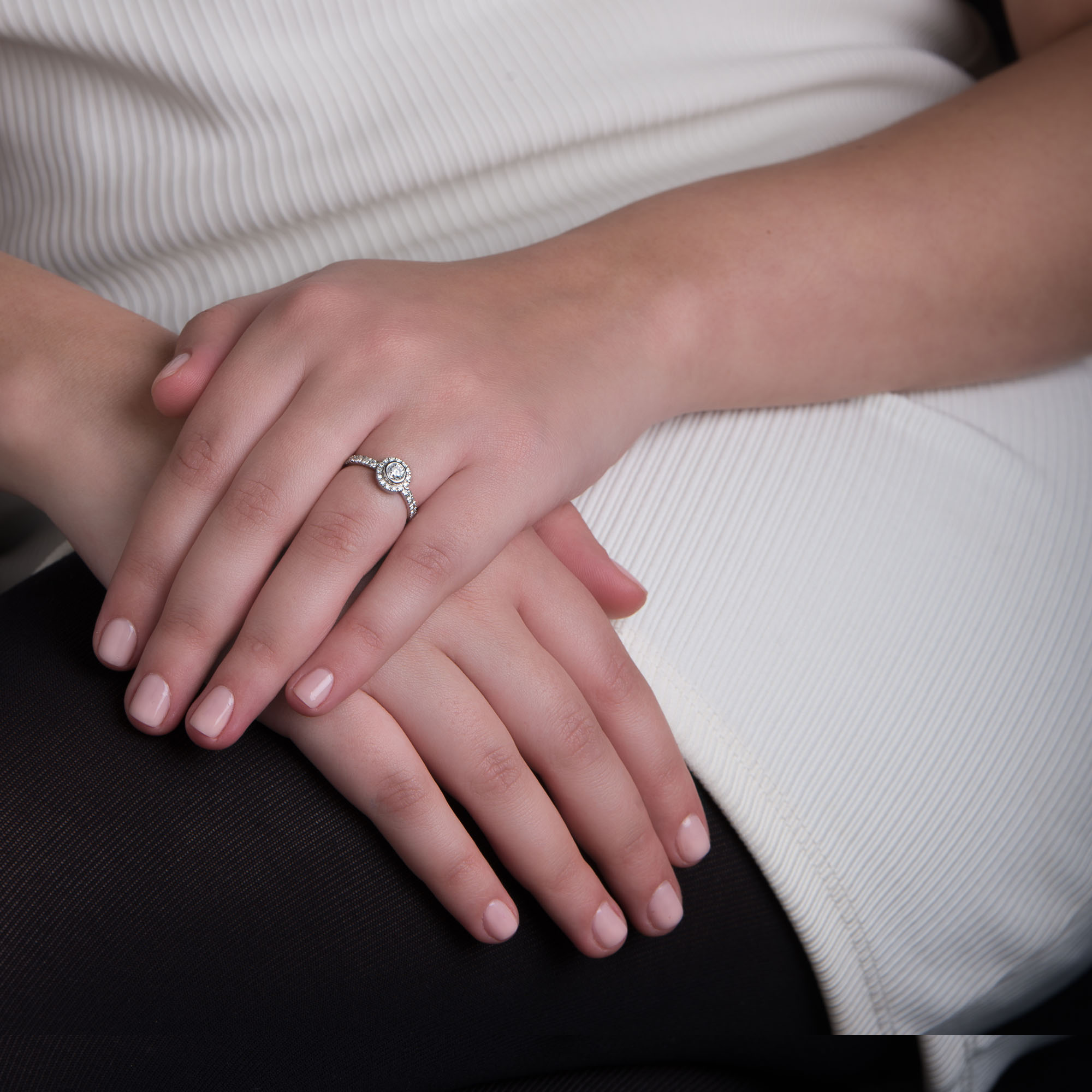 טבעת אירוסין Joana היא חלק מקולקציית טבעות אירוסין Halo החדשה שלנו. את היהלום המרכזי מעטרים יהלומים קטנים המוסיפים לטבעת אור מנצנץ.