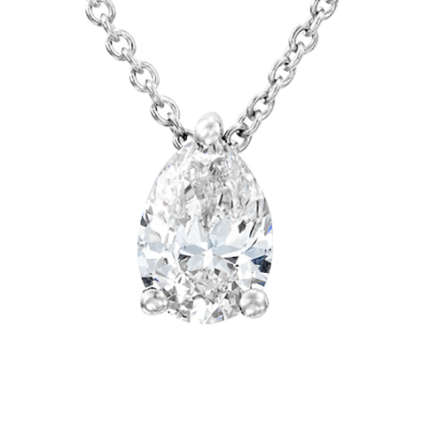 תליון סוליטייר קלאסי, במרכזו יהלום טיפה בשיבוץ שיניים. עיצוב נקי, אלגנטי ומושלם.