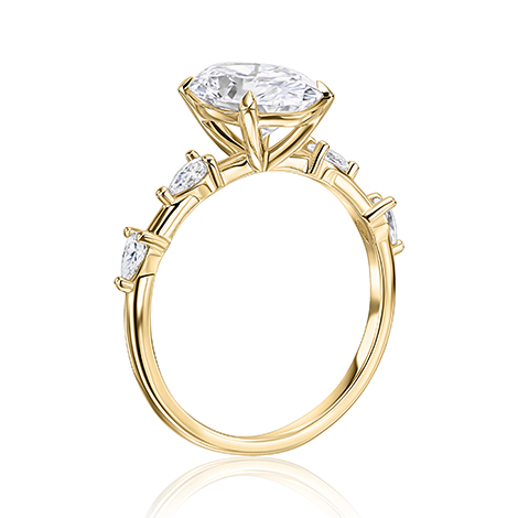 טבעת אירוסין Oval Pear אהובה במיוחד על ידי נשים שמפנטזות על טבעת קלאסית שתפנה את הבמה המרכזית ליהלום גדול ומרשים.