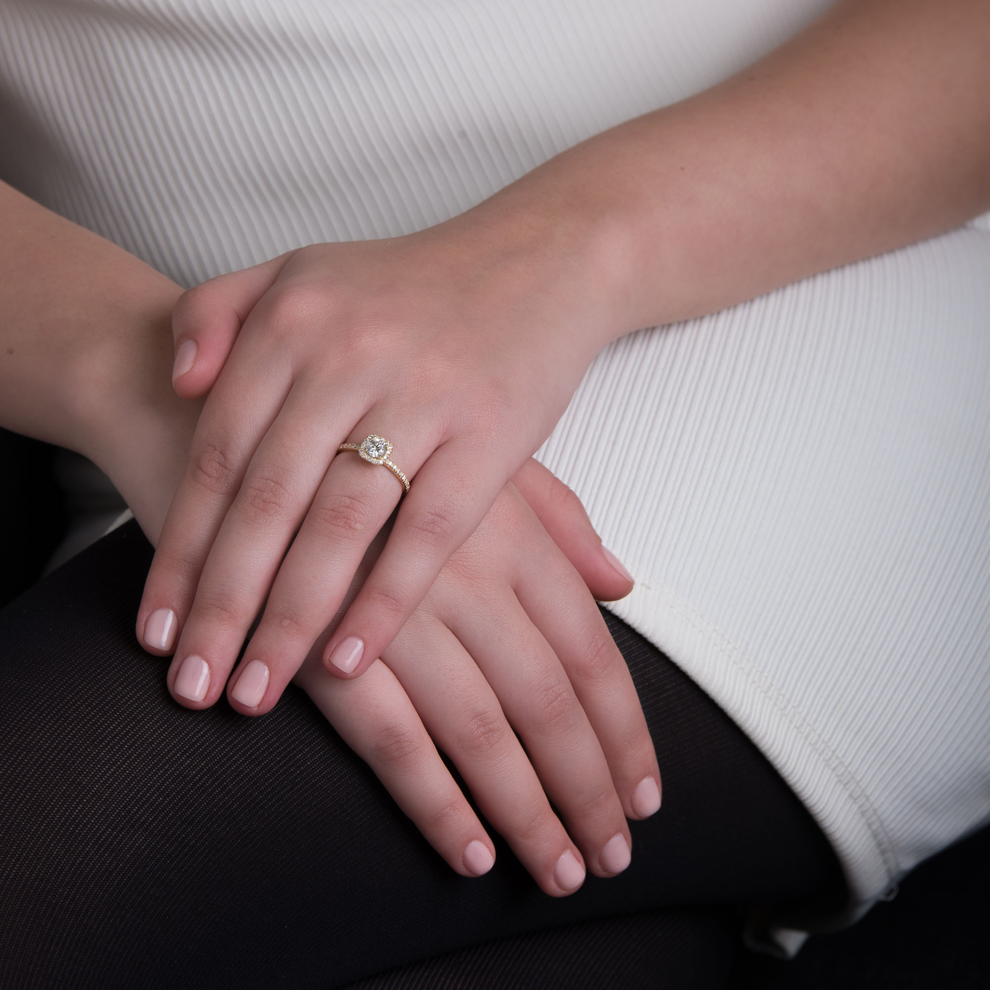 בקולקציית טבעות Halo, נדרשת רמה גבוהה ביותר של מקצועיות על מנת לשבץ את כל היהלומים הקטנטנים בהן. בית המלאכה שלנו, הנמצא בלב המשרד, בעל ניסיון רב שנים המאפשר לו לשבץ בצורה מושלמת, קפדנית ומדויקת כל יהלום שזכה להשתבץ בטבעת שתבחר.