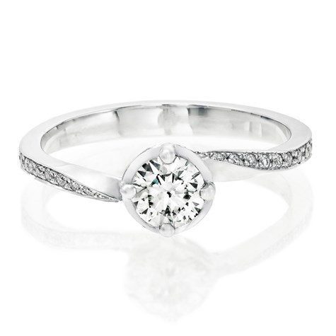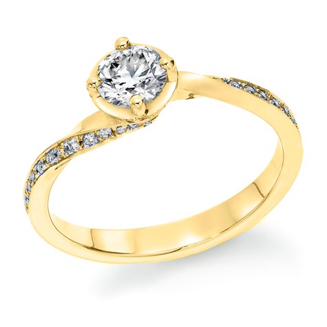 בעבודת צורפות ברמה הגבוהה ביותר המתבצעת בבית המלאכה שלנו, היהלומים הקטנים מטפסים בצורה ספירלית לאורכה של האבן המרכזית.