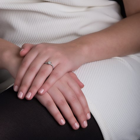 מעבר לעיצוב הרומנטי המתבטא בחישוק המלפף את היהלום המרכזי, הייחודיות בטבעת היא בשיבוץ האבנים הקטנות המיוחד רק לה.