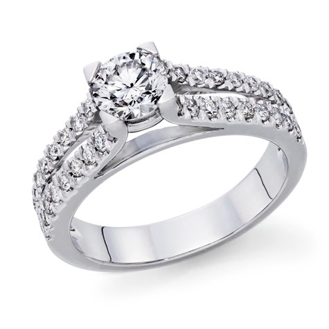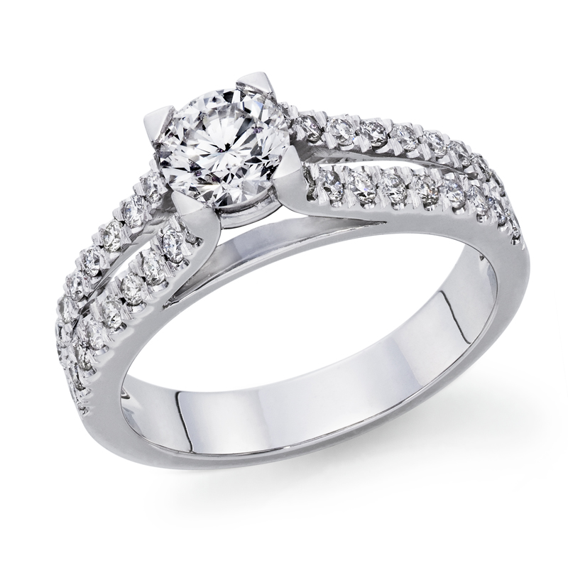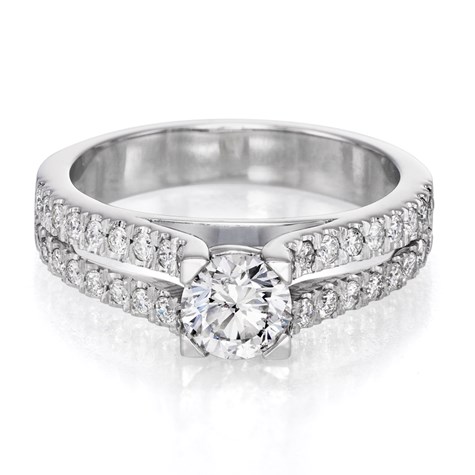 שתי שורות יהלומי צד מהממות במשקל 0.40 קראט מתנקזת ליהלום המרכזי, אוחזת ומרימה אותו אל על.