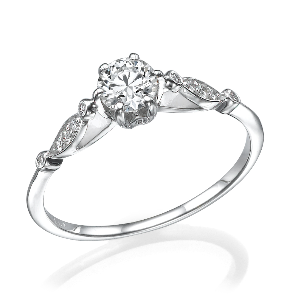 טבעת אירוסין Viola בעלת עיצוב עדין ורומנטי, בהשראת סגנון הוינטאג'. את היהלום המרכזי חובקות שש שיניים עדינות,