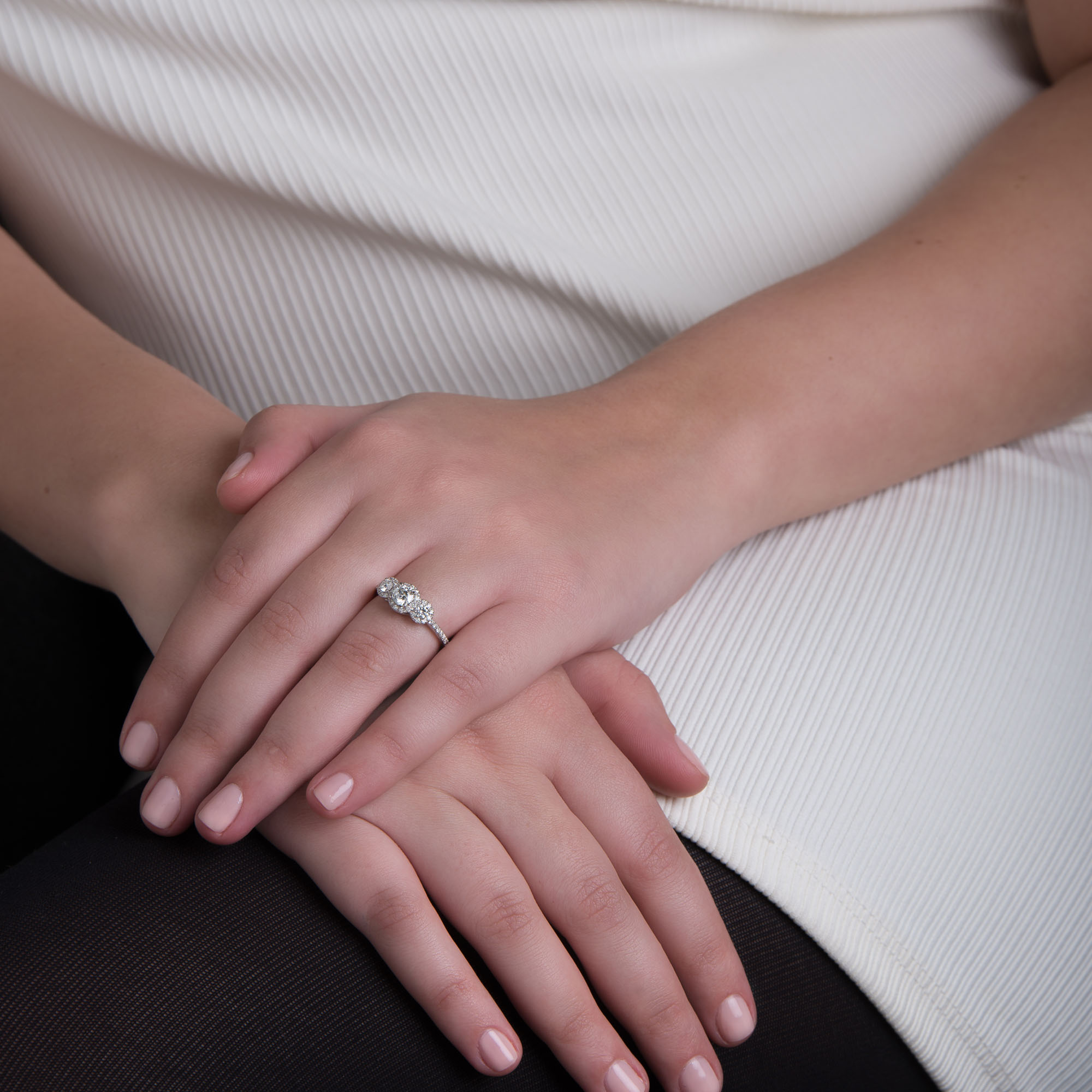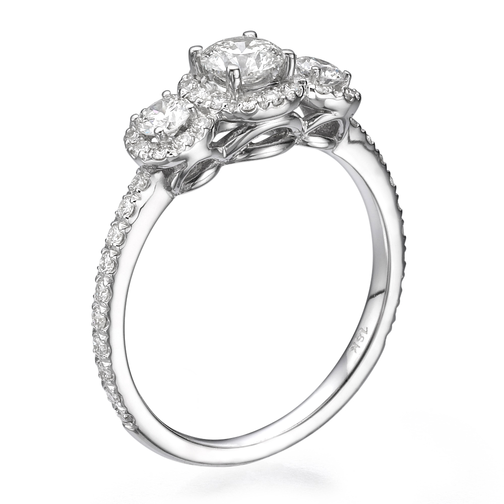 השיבוץ המיוחד שבה – שלושה יהלומים גדולים צמודים, כאשר יש יהלום אחד מרכזי ועוד שניים נוספים המוסיפים לעוצמה שלו. החישוק הדק של הטבעת מאפשר לה לשמור על רמת עדינות ואלגנטיות.