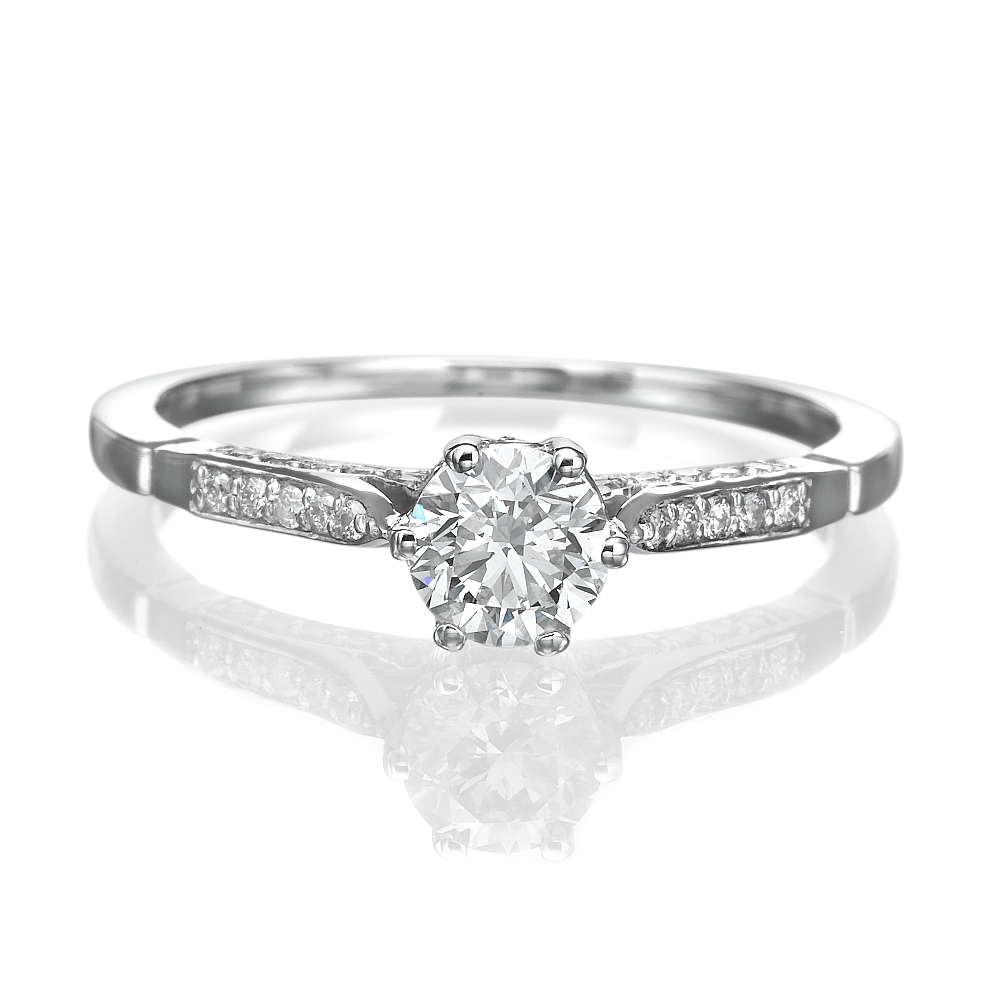 הטבעת מתאימה ליהלום מרכזי ומרשים במשקל 0.50 קראט בצירוף יהלומי צד קטנטנים המשובצים מתחתיו במשקל 0.19 קראט ויוצרים מראה מעניין ומתוחכם.
