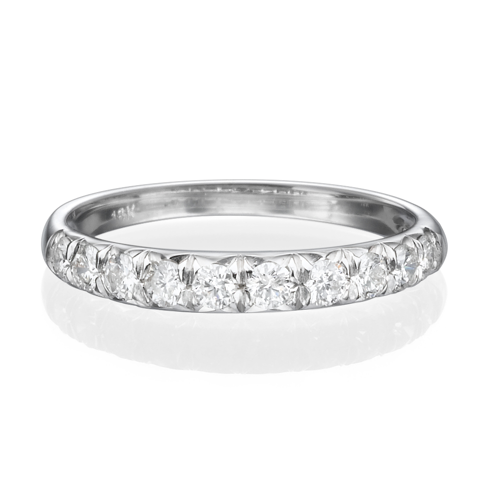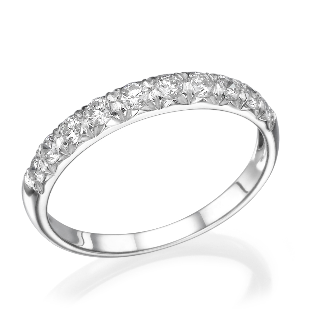 טבעת יהלומים עדינה וקלאסית, עשויה זהב לבן 14K בשיבוץ 10 יהלומים בחיתוך עגול.