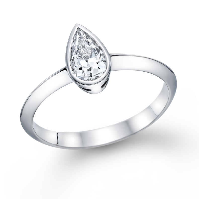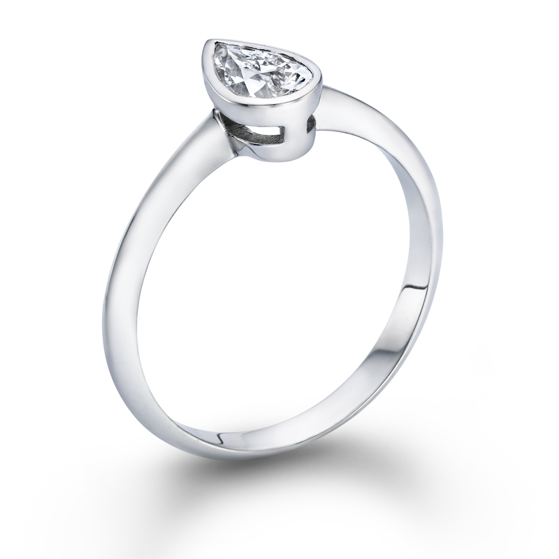 טבעת אירוסין קלאסית וייחודית, במרכזה יהלום בחיתוך טיפה, משובץ בשיבוץ Bezel. טבעת בקו נקי ואלגנטי שתלווה אתכם שנים רבות...