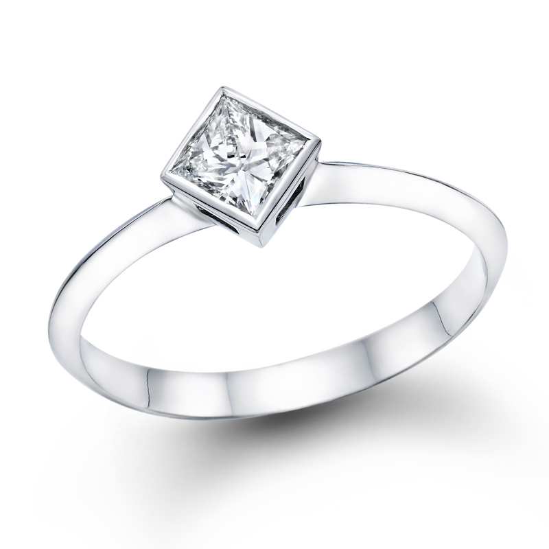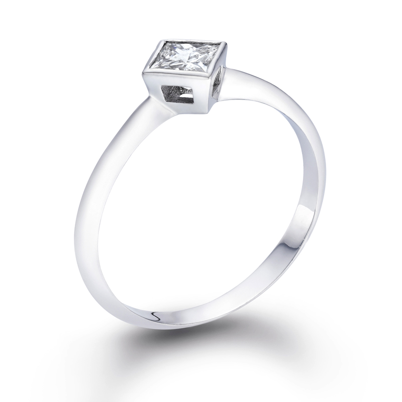 טבעת אירוסין קלאסית וייחודית, במרכזה יהלום בחיתוך מרובע, משובץ בשיבוץ Bezel. טבעת בקו נקי ואלגנטי שתלווה אתכם שנים רבות...