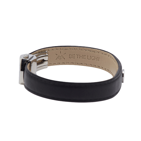 צמיד עור שחור משובץ יהלום מבית MASAOR בלעדי בשפר יהלומים.