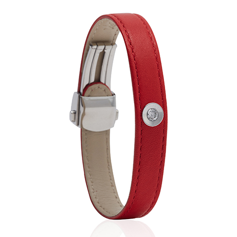 צמיד עור אדום משובץ יהלום מבית MASAOR בלעדי בשפר יהלומים.