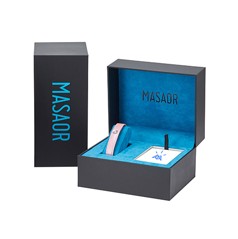 צמיד עור ורוד משובץ יהלום מבית MASAOR בלעדי בשפר יהלומים.