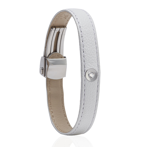 צמיד עור לבן משובץ יהלום MASAOR