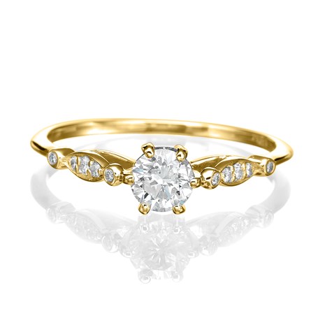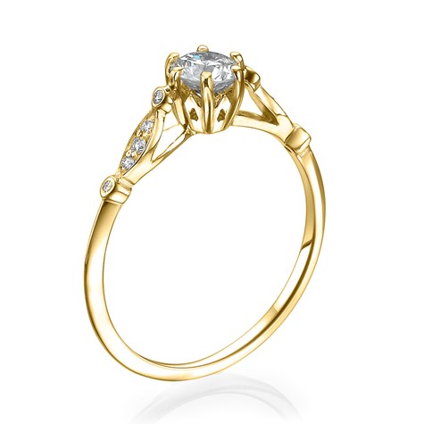 טבעת אירוסין Viola בעלת עיצוב עדין ורומנטי, בהשראת סגנון הוינטאג'. את היהלום המרכזי חובקות שש שיניים עדינות,