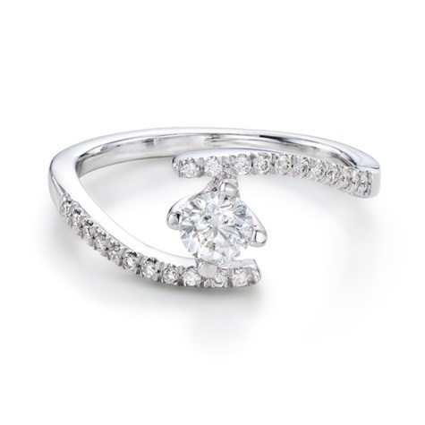 יהלומי הצד הקטנטנים המקיפים את היהלום המרכזי בחינניות, יוצרים "נפח" מרשים על האצבע.