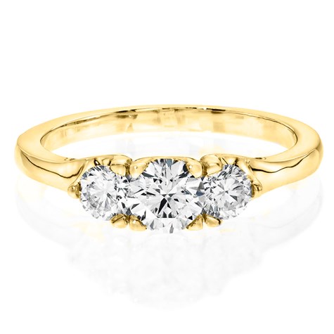 טבעת Jasmin יוצרת אשליה זוהרת של יהלום אחד גדול למרות שמדובר בשלושה יהלומים נפרדים.
