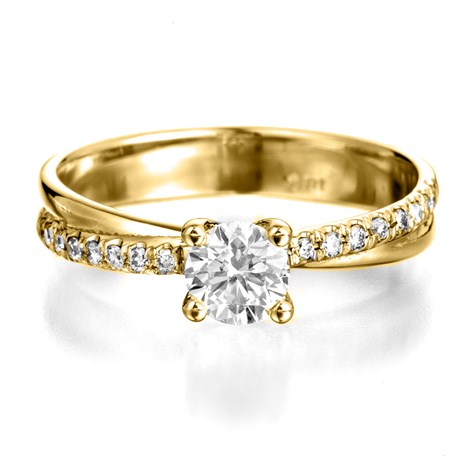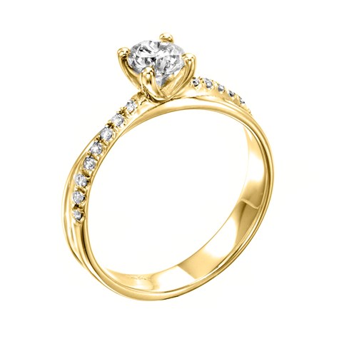 היהלום המרכזי משובץ בצורה בולטת ומחמיאה, ואבני הצד "עוטפות" אותו בצורה א-סימטרית מעניינת וייחודית.
